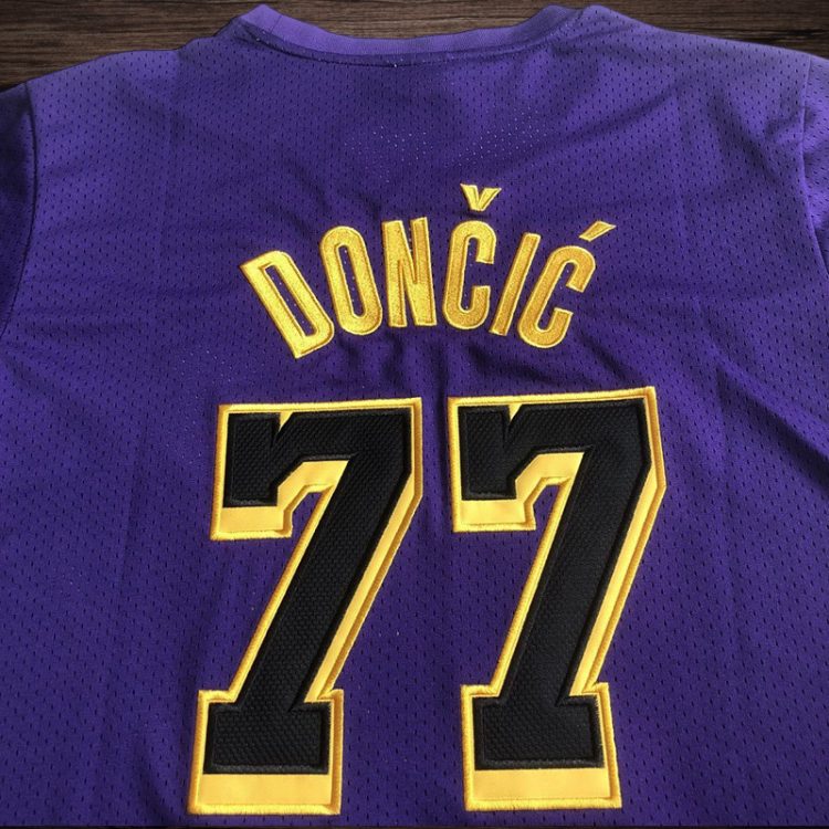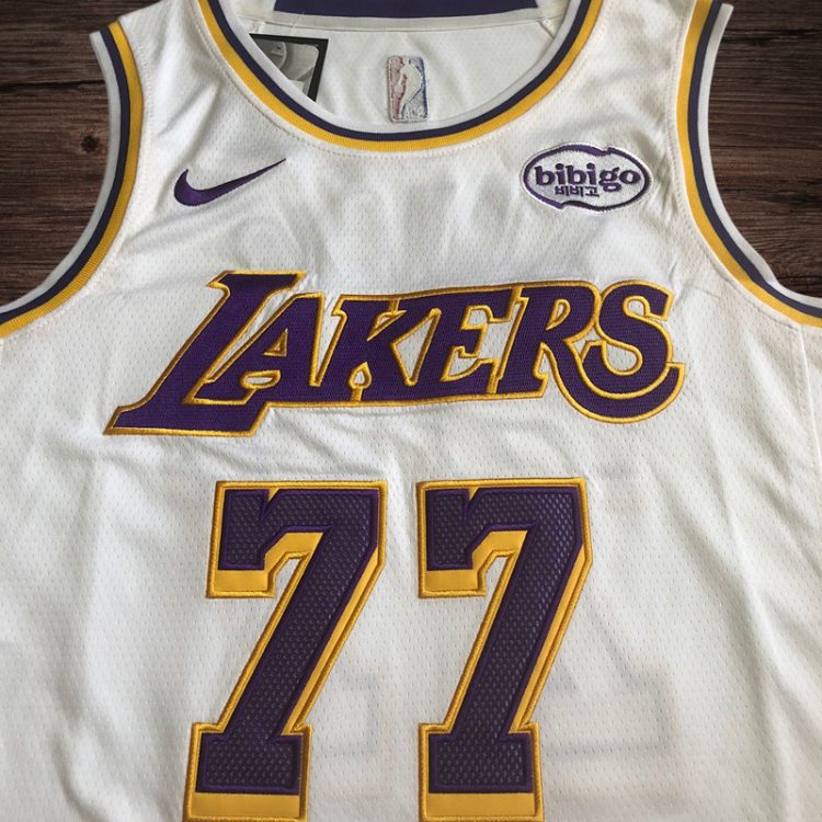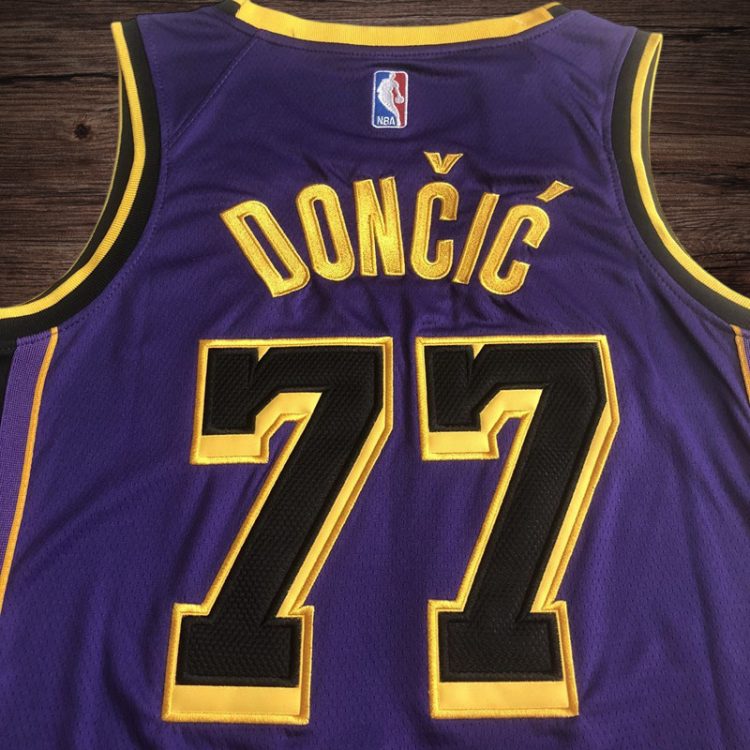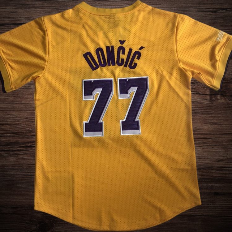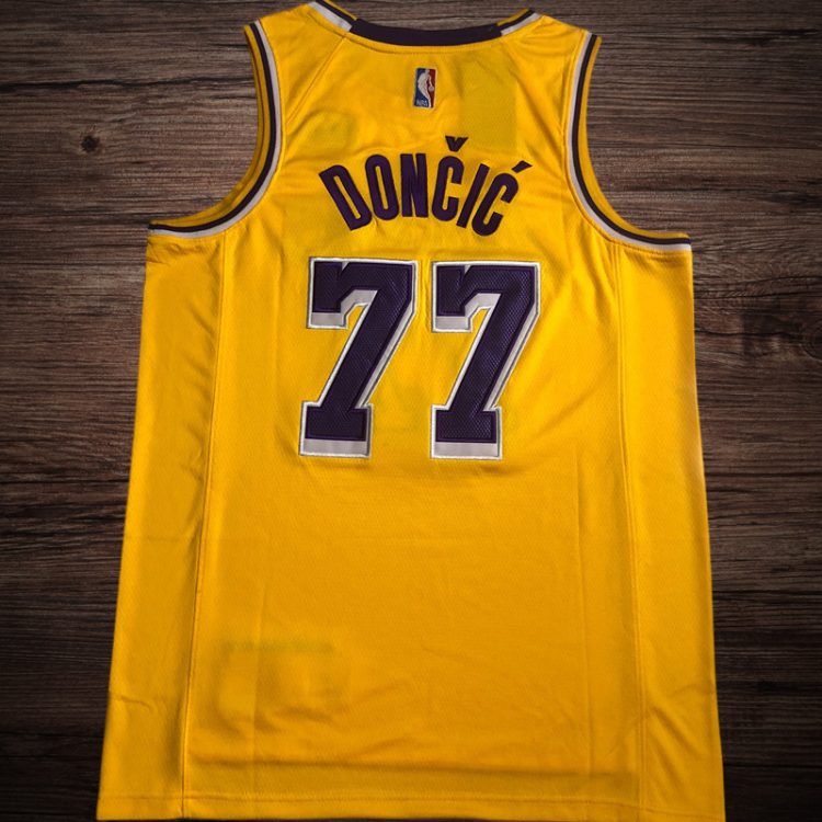 Men’s Los Angeles Lakers #77 Doncic Yellow Short Sleeve Jersey