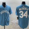 Men’s Los Angeles Dodgers Fernando Valenzuela #34 Light Blue Jersey