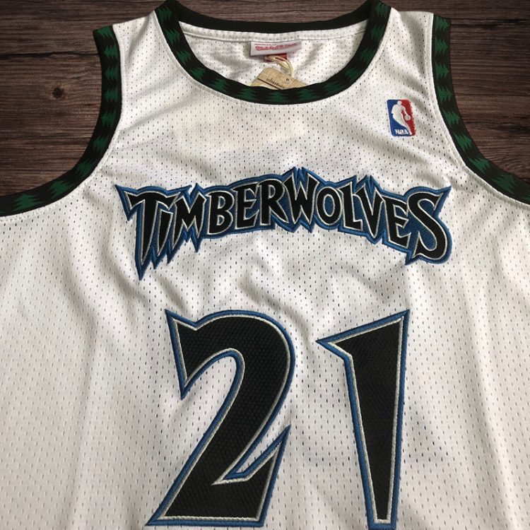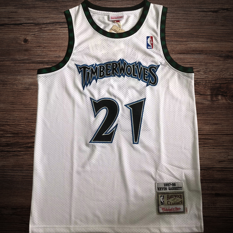 Men’s Minnesota Timberwolves 1997/98 #21 Garnett White Jersey